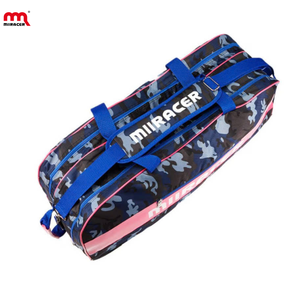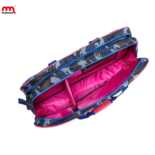 Túi Đựng Vợt Cầu Lông 2 ngăn đến từ nhà Miiracer nổi bật với thiết kế rằn ri cá tính kết hợp họa tiết hồng trẻ trung. Chất liệu vải dù bền bỉ, nhiều ngăn tiện lợi, sức chứa lớn (2–6 cây vợt cùng phụ kiện). Nội thất túi lót hồng ánh kim sang trọng, đế túi chống trượt, quai đeo êm ái. Phù hợp cho người chơi phong trào lẫn vận động viên chuyên nghiệp